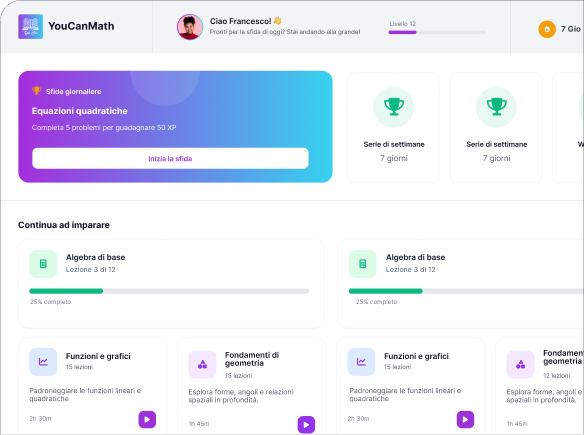 Videolezioni brevi e organizzate, esercizi mirati, un docente che ti guida. Con YouCanMath, capisci davvero.
